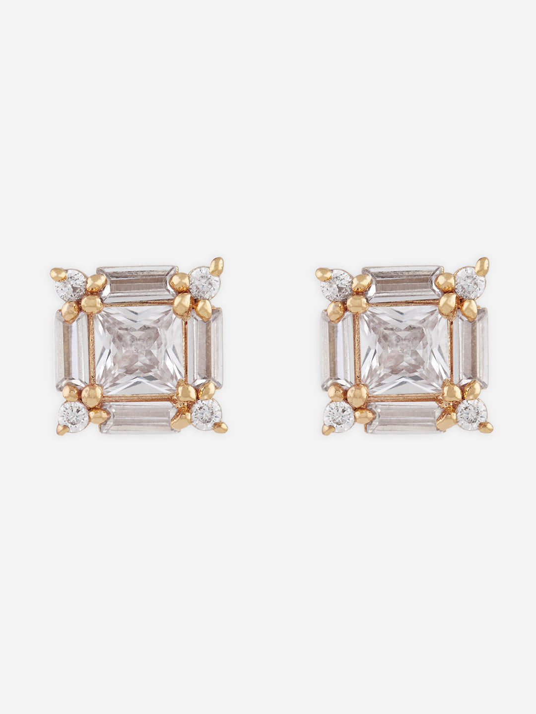 MINUTIAE Gold_Plated White Crystals Studded pendant and a pair of earrings Jewellery Set